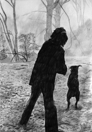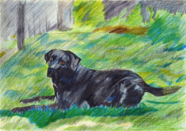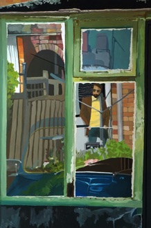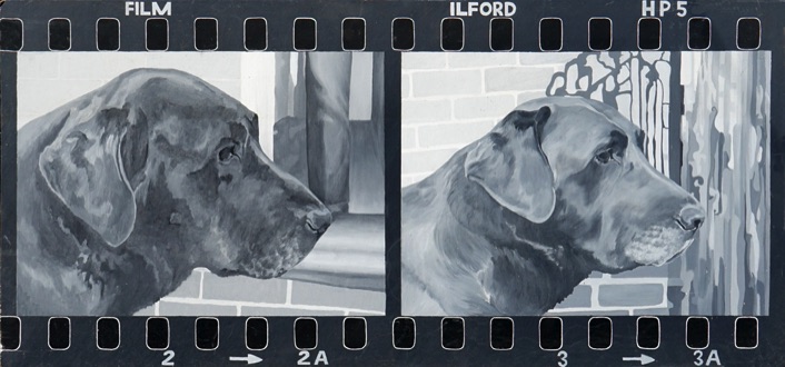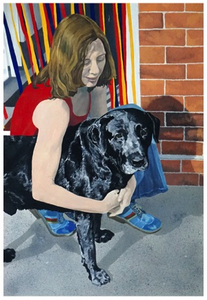 She has tackled a variety of subjects, although always drawing on her immediate surroundings and experiences, both at home and on her many travels abroad. Pictures of Nero, her pet Labrador - on his own, with the artist or her husband, or with Pat’s mother - and gouache studies of her Macclesfield home, are early examples of this approach.