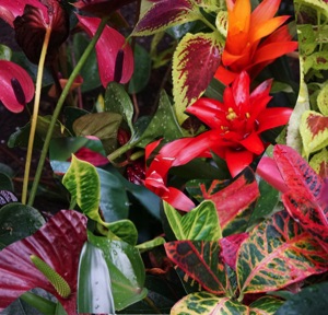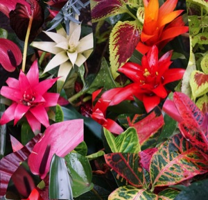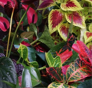 Stages in the development of the design of the 2018 painting, Sheffield Hot House Plants - the finished painting shown below